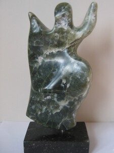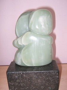 2020Symbool; Moeder en kind; groene speksteen op een sokkel van wit albast.