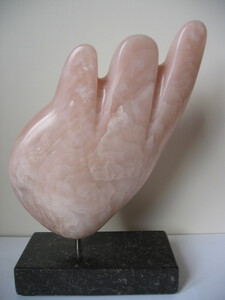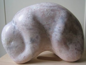 2011Abstract beeld van roze speksteen op een sokkel van Belgisch hardsteen.