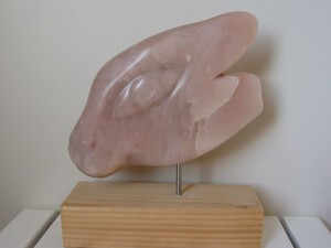 2020Gezicht van roze speksteen op een sokkel van Belgisch hardsteen. Titel: "De smachtende tovenaar" of "De dromende tovenaar".